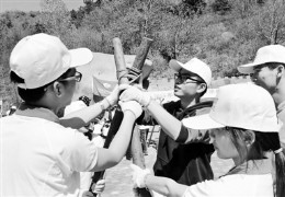 上周末,学生们在密云县云岫谷青年营地动手组装营桌 上周末,来自30多所高校环保社团的120多名学生骨干,来到密云县云岫谷青年营地,进行为期两天的生态营体验式培训。其间,同学们在北京环保宣传中心和北京市志愿服务指导中心应急志愿服务总队专家的指导下,动手组装营桌、搭建帐篷、制作午餐,进行拓展训练。同时,经过学生骨干与教师、专家的共同讨论,国内首份大学生“户外环保宣言”正式发布。 每年4月中下旬,都 [2015/5/3 1:10:20]