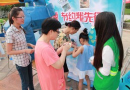 7月24日下午,南通大学绿色方舟环保社团“带绿进社区,送法惠居民”社区生态环境调研团在朝晖花园小区内举办“水润中国 安全饮水科普公益行”活动。 调研团分为五个小组,分别进行“水资源宣讲知识”、“有奖竞答”、“问卷调查”、“水体观察”以及“关注高血压”活动。 在宣传有关水资源知识的摊点前,实践分队成员用废旧硬纸板制作的水龙头固定在展板上,吸引了众多居民的注意力。“小朋友,你 [2015/7/25 9:36:09]