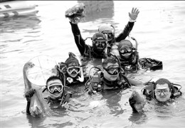 昨天是世界地球日,在北海公园800多年历史的太液池,十几名专业的潜水队员潜入水下,打捞清理沉入水底数十年的垃圾。据了解,蛙人潜入水底清理垃圾,这还是北海建园以来首次。 北海曾为皇家园林,自1925年起开放为公园。长久以来,脱落的树枝,游客掉落的各种垃圾沉入水底长达数十年。昨天随着潜水队员们一次次上岸,一个个装满水下垃圾的网兜被运送上来。岸边的游客也受到了感染和带动,帮忙将垃圾归类整理。活动结束后 [2013/4/23 10:28:40]