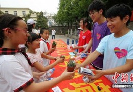 6月4日,安徽省合肥市蜀山区黄山路社区与合肥学院的大学生志愿者合作举办“废旧物品置换盆栽”活动,倡导绿色低碳时尚新生活。图为小朋友们用废旧水瓶换来盆栽。中新社发 韩苏原 摄 [2012/6/5 3:49:55]