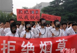 图为大学生戴着防毒面具宣誓拒绝烟草。 作 者:冽玮 28日,在世界卫生组织发起的第24个世界无烟日即将来临之际,西安交大宗濂书院的师生们和交大一附院的医务工作者,举行了以“拒绝烟草、拥抱健康,绿色世园”为主题的控烟宣传活动。 据了解,每年的5月31日是“世界无烟日,今年的主题是“世界卫生组织《烟草控制框架公约》”,宣传口号是“烟草致命如水火无情,控烟履约可挽救生命”。 据 [2011/5/29 14:55:34]