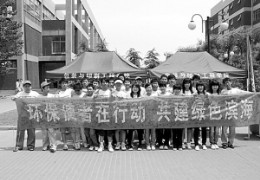 大学生宣传环保 又是一年初夏烂漫,鲜花满径,绿树成荫。对于天津科技大学而言,这既是寻常的光景,亦是一道独特的风景线。 环保是一项光荣的事业,更是一路漫长征程。科大的同学们坚持天天都是“六·五”环境日,他们用自己的青春,自己的言行“尚德尚学尚行、爱国爱校爱人”,践行着一点一滴,踏出科大环保征程中的每一个脚印。 环保,绿色有你有我 环保,是一个永恒的主题,也是科大同学们践行的目标。 今年以 [2011/6/2 7:43:25]