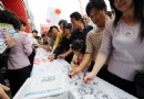 6月15日,市民在横幅上签名支持节能活动。 6月15日,为配合全国第18个节能宣传周活动,合肥举行万人签名支持节能活动。在签名活动现场,安徽省节能监察中心的工作人员向市民免费发放环保布袋和宣传资料。 新华社记者 陈晔华摄6月15日,市民在横幅上签名支持节能活动。 [2008/6/16 19:39:25]
