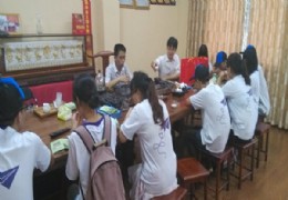 为参观学习茶文化,体验茶艺流程,7月19日,福州大学材料学院驻梦青春实践队在素有“茶师摇篮”的安溪虎邱茶艺学校展开了一系列活动。 在参观展厅后,实践队的同学们抵达了茶艺室,向那里的老师请教茶艺。负责教学的林镕钊老师热情的接待了同学们,并且给大家带来了一节别开生面的茶艺课。林老师是国家高级评茶师,在这方面有着丰富的经验,他向同学们亲自展示了泡茶