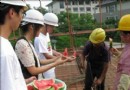 7月15日下午,浙江林学院信息工程学院“推进科学发展 聚焦农村建设”暑期社会实践服务团一行十人踏上他们的实践第二站——慰问建筑工人,夏日清凉之行。 团队出发之时,正值正午炎炎烈日当头。服务团成员拎着慰问品来到建筑工地。队长 王明 君与相关人员联系事宜后,成员就忙着切西瓜、洗水果。几名成员戴着安全帽,走进施工现场为建筑工地的工人们送上一丝夏日里的清凉。正在忙碌中的施工工人接过手中的西瓜,脸上露