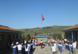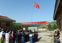 8月5日 星期一早晨,为树立学生爱国,奉献青春的意识,山东理工大学“赴陇援西”再赴会宁社会实践队在甘肃会宁水头小学举行“中国梦,少年行”少先队员升旗仪式。 现场,彩旗飘飘,热烈但不失庄严,全体学生着整洁的校服站成整齐的队伍。升旗仪式在雄壮的国歌声中开始,众人齐声高唱国歌行注目礼。两列八名护旗手高举少先队旗,迈着整齐划一的正步,簇拥着党旗走向主席台。全体学生高唱