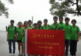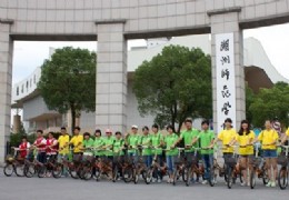 环保在行动,单车入湖州。在经过前期的联系和商讨之后,7月7日,浙江农林大学赴太湖流域生态环境调查团与湖州师范学院携手举办了环保单车行动,实现了我校暑期社会实践团队将生态理念广泛推广的目标。 上午,团员们从浙江农林大学出发,经过两个小时的舟车劳顿,终于抵达湖州师范学院,团员们受到湖州师范学院暑期社会实践活动相关学生代表的热情接待,团员们与政治学院的两支暑期社会实践团队合影留念。 在清楚我团的
