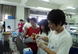 7月12日 上午,杭州师范大学生命与环境科学学院暑期社会实践团“心系食品安全,情融民生建设”食品安全小分队在我校五号实验楼进行牛奶酪蛋白含量及大肠菌群数的实验测定。据悉,为保证实验的科学严谨,小分队邀请了生科院老师周婷博士进行指导。 本实验共由两部分组成,即标示物含量测定和有害物质检测。其中,标示物含量测定采用经典生化实验——牛奶中的酪蛋白含量测定,后者则采用伊红美蓝实验对牛奶中的大肠杆菌进