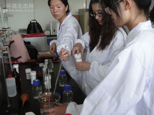 7月12日,浙江农林大学“生态你我他”浙江省景区水质监测科技服务团在环境工程实验室,对前期采集的西溪湿地水样进行指标分析。 浙江农林大学“生态你我他”浙江省景区水质监测科技服务团依托于浙江省大学生科技创新项目“浙江农林大学东湖水质监测及分析”的研究经验,在指导教师提供的专用实验室里,队员们对西溪湿地沿山河以及福堤公众开放区水样的COD、氨氧、浊度、总磷和PH等各项指标进行