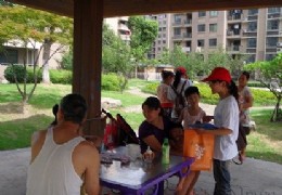 为创建美好健康的社区,营造健康舒适的生活环境,7月10日,杭州师范大学生命与环境科学学院赴社区环保宣传小分队前往多蓝水岸,正式开展暑期社会实践活动。此次进社区环保宣传主要包括两块内容:“绿色地棋”系列活动以及市民节水意识问卷调查。 “绿色地棋”以宣传环保,增强居民环保意识为目的,它将环保知识与大家熟悉的走棋游戏相结合,将充满生活气息的生活环保知识融入每一步下棋的过程中,寓教于乐,让参与者在欢