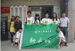浙江农林大学林业与生物技术学院的“弘扬生态文明,助力五水共治”实践小分队在七月初至七月底之间开展了暑期社会实践活动,此次社会实践活动旨在走进基层,走近市民,鼓励基层自身的“五水共治”;倡导市民身边的“生态文明”。 本次社会实践分为两大部分,第一部分与北京林业大学的同学一起进行宣传考察活动,多方位了解五水共治及生态文明知识;第二部分协办天目山镇的暑期假日学校活动。 第一阶段:“绿色咨询”及“实地