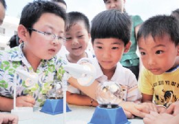 近期,滁州市暨琅琊区科协将“科普大篷车”开进琅琊路小学校园,在孩子们中开展科普宣传周系列活动,倡导“低碳生活”科学理念。活动中,十多个科普仪器展示了声光电、数理化等科学原理和现象,让小朋友们大开了眼界。图为小朋友们在触摸“辉光球”,观察球内变化出的各种色彩和图形。