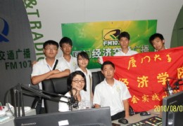 为了让更多人了解低碳环保的理念,为了将节能减排的意识传遍街巷城区,8月2日上午,厦门大学经济学院财政系“低碳足迹”党支部实践队前赴厦门市广播电视集团接受了厦门经济交通广播的专访。 实践队三名队员接受了主持人的提问,队员们虽然都是头一回见到广播节目录制的阵仗,但是很快便能摆脱最初的紧张情绪而适应其中,有条不紊回答了相应问题。 专访时间不长,队员们相继介绍了厦门大学经济学院所举办的实践