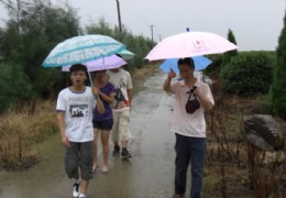 8月6日清晨,冒着淅淅沥沥的雨,团队成员跟随土壤学教授叶正钱老师来到了玉环县漩门湾蔬果合作社的地里,对各种农作物的种植进行了一番探讨与研究。 叶教授不辞艰辛,带着团队成员走了许多田地,对当地的许多植物种植情况以及生长情况都作了专业分析,并将课本上的专业知识熟练运用于现实生活中,同学们对叶教授的灵活讲课水平感叹不已,并深知“实践是检验真理的唯一标准”。 据研究发现,芦苇,麻黄树等耐盐植物适合种植