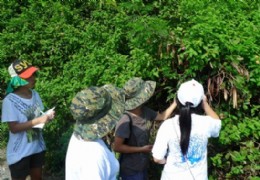 8月6日,湿地营第六天,营员们继续绿地图的绘制,在原来铅笔画的基础上正式用钢笔描清幅整图,并在晚上进行了涂色。整个过程,大家都是小心翼翼地进行,仔细研究那种配色更加合理此,参与过程也让她们觉得非常快乐。 此外,8月9日负责带领来自台湾的小朋友参观红树林的营员们也紧锣密鼓地训练,他们集中组织学习相关知识、顶着烈日去红树林保护区周边进行踩点、确定周围的主要动植物、仔细区分红树林的主要树种,为了能更好