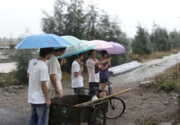 8月5号,浙江农林大学“土壤你我他”——浙江省盐碱地科技研究服务团在结束玉环站实践后,讨论决定我团继续实践,以点带面,在各地发扬以人为本的实践精神,将实践服务深入广大农村。 实践小分队来到了椒江一个岸靠海小村庄——章安街道道头金村,实践队员来到该村村委会了解乡情,包括村里的农业比重,农业产值等,村委会负责人告诉我们,道头金村是椒江一个典型的农村,经济基础较薄弱,农业比重仍较大,而由于土壤肥力下降