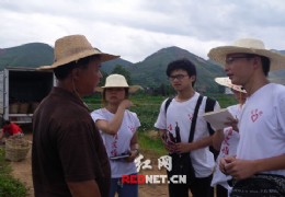 (志愿者采访当地农户,了解种植状况) 红网永州7月23日讯(通讯员 钟艳)7月22日,湖南科技大学商学院暑期“三下乡”社会实践团队走进湖南省永州市蓝山县第一大香芋种植基地――毛俊村,调查当地低碳农业现状。 志愿者在蓝山县毛俊香芋专业合作社理事的带领下,来到田间了解香芋的种植过程。当地大部分农户通过测土配方后,按一定的比例使用农家肥和有机肥结合的种植经济作物,低成本、高环保的生产模式使生产过程更