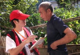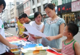 一、 我们是街头的那道最亮眼的风景线 7月18日~7月23日每天清晨,上甘乡的街头小巷总会出现一道亮丽的风景线,那是浙江农林大学青年志愿者协会赴上甘暑期社会实践团的志愿者们,他们走街串巷,寻访人家,进行无偿献血知识的宣传,解答关于无偿献血知识的疑问。 小红帽,蓝T恤,红马甲,那是志愿者们最醒目的标志。每当志愿者们举着旗帜,拉着横幅沿路宣传时,总会引来路人们驻足关注。这群队伍成了这几天