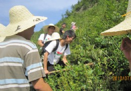 7月21日,浙江农林大学“心系三农”暑期社会实践调研服务团一行15人在科技处余学军老师和校团委王康老师的共同带领下驱车来到金华市磐安县,开始为期一周的野外调查和农村调研。 经过近3个小时的车程,实践调研服务团于上午11时左右到达磐安,磐安县林业局副局长吴正维亲切的接待了我们。听取了吴局长对当地生态环境的介绍后,老师同学们顾不上休息,当天就前往深泽乡、东门山、徐公岩等山地进行植种统
