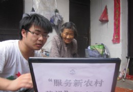 7月17日下午,浙江农林大学信息工程学院 “服务新农村建设”志愿服务团来到临安市东湖村为当地村民宣传世博知识。 活动中,服务团以引人入胜的方式向村民介绍了上海世博会的相关情况,村民们反应热烈。如队员之一的周彬采取了播放视频的形式,配合幽默生动的讲解,使村民能直观地接触到世博的各个方面。当地一位老奶奶通过本活动了解了世博会的相关情况和祖国这几年的发展成果,对服务团队员和活动本身给予了极高的评价,同