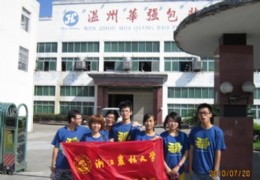 2010年7月20日,浙江农林大学工程学院“青春实践,梦想起航”暑期社会实践团队温州分队7人带着“走进民企,关注民生,立足今天,笑面职场”的主题奔赴位于温州苍南灵溪工业园区的温州华强包装厂。 上午,大家乘车到达厂区。由朱松工程师负责接待我们。在他的带领下,大家参观了办公楼及生产车间。了解了生产过程,见识到了自动化成产的流程,在长见识的同时又开阔了眼界。期间,大家积极提问,朱工程师也非