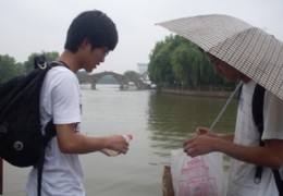 7月11号上午,浙江农林大学环境科技学环境科技类093“南湖水质检测,倡导保护环境”暑期社会实践团队在团长岑佳辉的带队下赴嘉兴南湖收集并检测南湖水。 队员们收集了南湖不同景点的水,在采集过程中,我们在岸边发现南湖的水质单从颜色上看已经变的有些绿且有点混浊,整个水体质量也不容乐观。据了解,南湖水质变差主要是水生植物疯长,工业和农业用水的不合理排放,垃圾乱扔状况等造成。之后通过平湖自