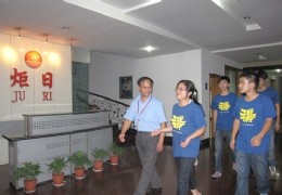 2010年7月14日,浙江农林大学工程学院“青春实践,梦想起航”暑期社会实践团队萧山分队9人带着“走进民企,关注民生,立足今天,笑面职场”的主题奔赴炬日家具工业有限公司。 上午,分队成员乘车来到炬日集团生产基地,并在企业副总经理戴钟先生的带领下依次参观了企业采购部,生产部,研发中心,产品质检部以及生产一线。期间,小分队个别成员就生产要点提出疑问。在场前辈与其进行沟通,对其排忧解难