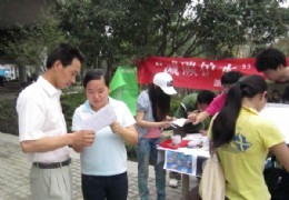 7月13日,浙江农林大学天目学院经管系“减碳护水”小分队于转塘外张村开展活动,在发放倡议书、宣传册的同时现场演示了有关低碳生活的小实验,如巧剥橙子皮、洁净镜子、除锈小巧门等。在活动中,当地居民积极参与,不少居民更是与小分队成员交流取经,共同感受生活的乐趣。与此同时,我们也邀请了现场的居民与在场观众分享其它自己在生活中的小窍门。 此次活动令当地居民受益良多,其中王大伯表
