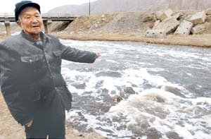 40公里黄河竟有30个排污口 兰州南滨河路,是兰州人引以为豪的“黄河40里风情线”,是兰州市不惜巨资打造的全国最长的带状公园。5月25日,记者在这里却耳闻目睹了黄河污水横流的实景。一位正在锻炼身体的老人说:“70年代的时候,兰州市民还能直接从黄河里取水饮用,现在不要说是喝水了,就是洗个手也感到发粘。”记者顺着老人注视的地方看去,只见河堤边缘的水与黄河中间的水有明显色差。人未走近,先闻到阵阵扑面而来的恶臭。近前一看,从河堤底部伸出一个直径足有半米的排污管口直对黄河,令人作呕的酱色污水竟直排“母亲河”。而此地距兰州市七里河桥排洪沟仅数十米。 据了解,在这段仅40公里的沿黄通道沿线,隐密和暴露的排污管至少有30个以上。一些隐蔽处还成了无人看管的露天公厕。花巨资打造的风情线尚且如此,更何况其他河段呢? 甘肃地处黄河上游,黄河流经其境内的甘南、临夏、白银、兰州等4个州市,全长913公里,占黄河干流河道总长度的16.7%,担负着为中下游提供净水的重要任务。 近年来,甘肃省虽然采取了一系列水污染的治理措施,包括关停取缔了一大批严重污染环境的小造纸、小染料等国家明令禁止的“十五小”、“新五小”污染企业,但却收效甚微。记者从全国人大常委会水污染防治检查组日前对黄河甘肃段的执法检查中获悉:2004年黄河甘肃段污水排放量为2.12亿吨,主要污染物化学需氧量的排放量达6.89万吨,并且污染仍在继续…… 兰石化每小时排污3550吨 5月26日,记者来到中石油兰州石化公司长达26.77千米的油污干管的排污口。只见油腻腻的污水裹带着泡沫不断涌出,方圆1公里范围内,气味刺鼻,臭气熏天。据当地人介绍,上个世纪50年代,这里的滩边遍布红柳、芦苇,栖息着斑头雁、高原山鹑等十几种水鸟,自从修了这个排污口后,附近农民用黄河水浇的菜被严重污染,红心萝卜变成了黑心萝卜,辣椒、黄瓜、茄子和果树烂根坏死,连以前经常光顾的鸟类都迫不及待地逃走了。 中石油兰州石化公司是西部地区最大的炼油化工联合企业,2004年每小时消耗新鲜水达3740吨,外排污水每小时为3550吨。据3月底黄河上游水环境监测中心对兰石化公司排入黄河的污水取样检测,悬浮物超标2.7倍,石油类污染物超标2.26倍。 5月27日,记者来到距兰州市区约40公里的兰州新西部维尼纶有限公司。据知情人员介绍,该公司用水量大,其清洁水厂设计标准低,污水不能完全处理,且排水管网清污分流设施不完善。记者在知情人员的带领下,强忍着空气中四处弥漫、令人作呕的酸臭味,艰难地探寻排污出口。在距离黄河约60米左右的地方,先后发现4个流淌着酱黑色污水的管口。这些源源不断的污水泛着白色的泡沫,夹带着泥土,肆无忌惮地流向“母亲河”。据3月底黄河上游水环境监测中心的检测结果显示:这些排污口所含污染物均不同程度超标,有些甚至超过国家规定标准的10倍以上。 “中国铜城”排污超标33倍 5月28日,记者来到享有“中国铜城”之称的白银市。黄河在白银全长214公里。2004年黄河白银段废水排放量为0.32亿吨,化学需氧量为1.21万吨,分别占黄河甘肃段的15.1%和17.6%。 白银市白银公司是我国“一五”期间建设的重点项目,开发建设50年,但企业技改投入严重不足,铜冶炼硫酸系统用的仍是以前的单转单吸落后工艺,有色重金属废水处理还未达标,对黄河水质构成威胁。 白银市有关负责人介绍说,据全国人大常委会水污染防治法执法检查组日前对白银市8家硫酸厂的检查结果显示,8家企业年排放的163万吨酸性废水经简单沉淀后排入黄河,对黄河水体造成了严重污染。这位负责人还说,白银有色铜业公司年排放的346万吨废水,也是只经过简单处理就排入黄河。这些废水中含有铜、铅、镉等多种重金属,其中有些重金属含量超过国家排放标准的33.41倍。 包头段随处可见死鱼蛙 沿着黄河古道,记者深入到黄河包头段境内,所见所闻更是触目惊心。 黄河水自古以来是“黄”色的,然而在包头九原区附近的麻池黄河岸边,记者看到的却是黄河边泛起一道道类似洗衣粉水的白色泡沫,有的地方类似酱油色。当记者挽起裤腿、走进河边的时候,与记者随行调研的中学生北荟惊叫起来:青蛙都死了,好惨啊!记者发现死在岸边的几条青蛙都吐着舌头。北荟判断说,它身上没有伤痕,为什么吐出了舌头,是因为中毒死了。有十多年养羊经验的老张说,青蛙是水生动物中生命力最强的一种,它都如此,人更何堪?老张说,他养的200多只羊,因为喝了黄河岸边的污水,毛儿都掉光了,牙齿变得又细又长,吃草无法咬合,饿得皮包骨,已经有110多只羊死掉了。就在离死青蛙不到15米远的地方,我们又发现水里飘浮着一条条肚皮朝天的死鱼。看到死鱼,包头土右旗五犋牛村、团结渠电力扬水站职工周秉孝说,有个姓乔的老农民,去年在扬水站附近每天打捞100多斤黄河鲤鱼,大多数半死不活,他拉到城里,以优惠价卖给了各大酒店,“嗨,城里人哪想到吃的是中毒的死鱼呀……” 污水浸泡过的耕地颗粒无收 刘全权承包着红旗农场的200多亩土地,2001年,由于附近一个重工业生产厂排放出的污水污染,其中80多亩玉米颗粒无收,40多亩翠绿的杨树全部烧死了。原本好端端的土地,由于污水的浸泡,地表面发黑,地下30多公分结成了厚厚的土坷垃,至今不长一根草。农民尹小武的耕地里也同样是污水横流,50亩玉