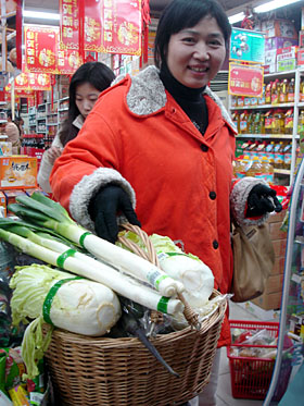 苏州一家大型超市推出了环保藤编篮。顾客只要交10元钱押金,就可以将购买的商品用藤编篮带回家。顾客可凭证退回押金。新华社发 王建康 摄