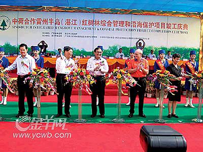 本报记者 袁增伟 通讯员 黎明 陈忠圣 摄影报道 前天,广东省林业利用无偿外资最大的项目———中荷合作雷州半岛(湛江)红树林综合管理和沿海保护项目全面完成,五年来新增红树林1003公顷,有效地促进了红树林的保护和管理。原国家林业部副部长蔡延松、广东省副省长李容根、荷兰驻广州总领事馆副总领事历克文等出席了项目竣工庆典仪式。 李容根在庆典仪式上说,中荷红树林项目是广东林业生态保护的一项重要工程,红树林恢复发展已被列入全省生态建设的重要内容,广东将进一步扩大林业对外合作与交流,继续加强与荷兰的合作,共同保护红树林。 项目总投资500万美元 湛江市地处祖国大陆最南端,三面临海,海岸线长达1556公里,海湾众多,气候温暖,全市有红树林面积7700多公顷,占全国红树林面积的32%,占广东省红树林面积78%,是全国红树林面积最大的地区。 据中荷项目管理委员会主任、省林业局局长邓惠珍介绍,中荷合作雷州半岛红树林综合管理和沿海保护项目,是中国和荷兰两国政府的双边合作项目,项目总投资500万美元,其中荷兰投资300万美元,中国投资200万美元(由广东省和湛江市政府投入)。项目于1997年3月开始考察评估,2000年12月两国政府正式签字确认,2001年2月启动实施,至今年10月圆满完成各项任务。 中荷红树林项目实施五年多来共完成人工造红树林1003公顷,红树林资源总量逐年增加,同时,在中外合作交流、自然保护区资源调查、湿地资源保护、环境教育、社区发展等方面也取得了新突破。原国家林业部副部长蔡延松指出,中荷红树林合作项目成为了我国对外合作项目的重要组成部分,项目的成功实施为广东的红树林乃至中国的红树林发展和保护提供了经验和示范。荷兰驻广州总领事馆副总领事历克文认为,中荷红树林合作项目是一个成功的项目,它成为应付世界湿地问题的一个好的范例。 周边区共管并扶助村民 湛江红树林国家级自然保护区由68个保护小区组成,分散在8个县,涉及39个镇、147个行政村。当地不少村民在保护区内采海捕捞,并以此作为经济收入来源,过度采海捕捞使湛江红树林保护区的生物资源呈下降趋势。针对此情况,项目办着手编制《湛江红树林保护区周边区共管计划》,与试点村庄签订了红树林自然资源共管协议,设立小额项目扶助基金,资助当地村民发展生产、脱贫致富,帮助红树林周边村民解决用水问题,融洽社区关系,促进了红树林资源的保护管理。 引来濒危物种黑脸琵鹭 保护区管理局林康英局长告诉记者,湛江红树林国家级自然保护区成立于1997年12月,总面积约2万公顷,是中国保护红树林面积最大的自然保护区,现有红树林面积7000多公顷,占全国的32%,占广东省的78%。2002年1月该保护区被列入拉姆萨公约名录,是目前中国30个国际重要湿地之一,为候鸟迁徙途中提供了重要的“加油站”。中荷红树林项目实施后,红树林面积不断增加,生态环境得到改善,吸引了更多的候鸟到此“安居乐业”。据统计,目前保护区内已记录到鸟类194种,其中列入国家重点保护名录的鸟类有9种,广东省重点保护名录34种,国家“三有”保护名录149种,中日候鸟条约81种,中美候鸟条约51种。从去年开始,湛江红树林国家级自然保护区开展区域内的亚洲水鸟年度调查和黑脸琵鹭年度调查,数据表明,鸟的种类和数量都比去年明显增加,特别是鹭鸟数量显著增加,还首次发现全球濒危物种———黑脸琵鹭和彩鹮两种鸟。