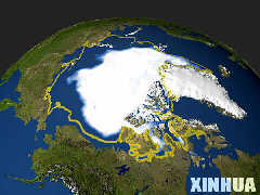 这是2005年9月北极地区海冰景象的卫星照片。据测算,北冰洋2005年9月21日的海冰面积约为530.95万平方公里,为自有卫星监测以来的最小面积。由于全球变暖,北冰洋在最近几十年发生了明显的异常变化。 新华社发 2007年全球瞩目的一项大事就是联合国政府间气候变化专门委员会第一工作组审议并通过《气候变化2007:自然科学基础》评估报告,给全人类敲响警钟:到21世纪末,在多种温室气体排放情景下,预估全球地表平均增暖1.1至6.4℃,海平面相应上升0.18—0.59米。同时,高温、热浪、强降水事件的发生频率很可能会增加,热带气旋(含台风和飓风)的强度可能会增强。这将导致极端气候灾害和生态、环境、海洋、地质灾害形势,以及国土安全、粮食安全、能源安全等形势都更加严峻,政治、经济、社会、文化建设与发展面临更多复杂难题。