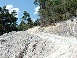 在2007年3月,绿色和平调查组发现APP为了在鹦哥岭自然保护区核心区种植桉树,开辟出一条宽约7米,长达20至30公里的道路——当地村民形象地将其称为“天路”(下图)。而自然保护区管理条例有关规定,自然保护区不允许建设任何项目,包括公路。