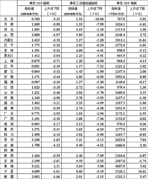 地方能耗下降幅度大于全国平均数