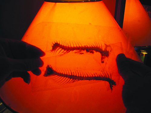 “鲫鱼活体完全看不出它的脊椎骨已经变形,但这个标本很清楚地表明,尾部第三、四节脊椎骨变形弯曲。都是二恶英、POPs(持久性有机污染物)惹的祸。”她向记者展示标本时表示。