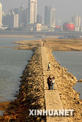赣江南昌红谷滩段建起拦水坝,以提高赣江水位,确保航道畅通(12月3日摄)。新华社记者宋振平摄