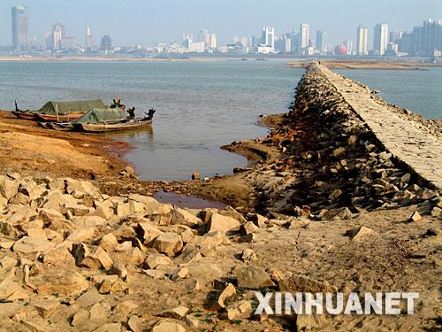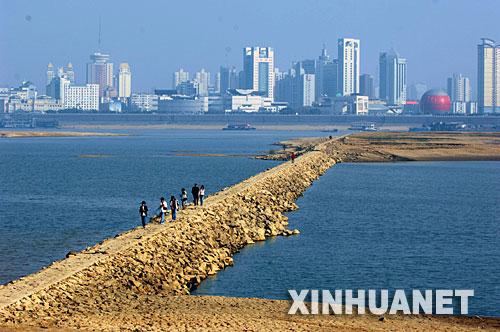 赣江南昌红谷滩段建起拦水坝,以提高赣江水位,确保航道畅通(12月3日摄)。新华社记者宋振平摄