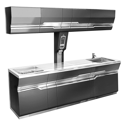 看似普通的橱柜可有大名堂――这还是一个冰箱,省料又方便,很有创意。 |