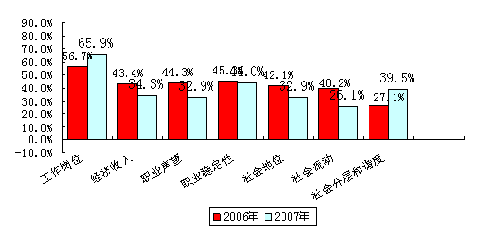 2006年以及2007年公众对职业声望的满意度的比较如下图: