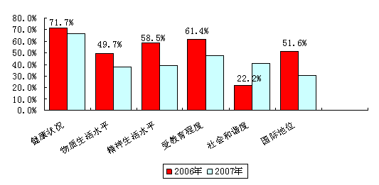 2007年与2006年公众对幸福感的满意度的比较如下图: