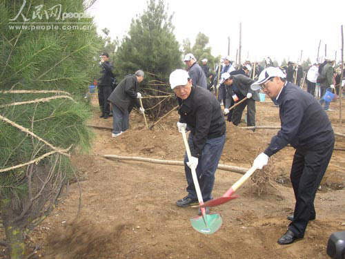 图为国家林业局局长贾治邦(左)正在植树 人民网记者严冰摄