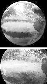 科学时报2006年12月15日讯 海洋生命系统的存在依靠一个平衡的生态链,这一生态平衡的微妙程度超过了任何人的想象。据《科学》杂志在线报道,科学家研究发现,即使是海洋水温的小幅度升高也会扼杀某些海洋微生物的光合作用。如果温度持续升高,将会对以浮游生物为食的生物甚至全球气候产生巨大影响。 浮游生物是一种充斥整个海洋的微型生物,位于整个海洋食物链的末端。这些海洋浮游生物每年会从地球大气层中吸收多达500亿吨的二氧化碳,这几乎相当于陆地上所有植物在光合作用中吸收的二氧化碳的总和。因此海洋中的浮游生物的存在是控制大气中二氧化碳含量的关键。 从1997年至今,位于考瓦里斯的美国俄勒冈州立大学海洋植物生态学家Michael Behrenfeld和他的同事一直从事水温变化对海洋浮游生物影响的研究。通过美国宇航局(NASA)GeoEye卫星上搭载的“宽视场水色扫描仪”(SeaWiFS),Michael Behrenfeld的“海洋浮游生物研究小组”可以每两天校准一次海洋水色。 正如人眼看到的不同水体具有不同的颜色一样,海洋水体在可见光下(近红外波段)也有一定的光谱特性,科学家们称之为海洋水色。海洋水体呈现绿色代表浮游生物活动频繁,海洋水体呈现蓝色则代表浮游生物活动减少。 “宽视场水色扫描仪”的绝对误差小于5%,相对误差小于1%,海洋研究学家Gene Carl Feldman是“海洋浮游生物研究小组”的成员之一,他同时也是NASA位于马里兰的Goddard空间飞行中心的研究人员,他说:“‘宽视场水色扫描仪’工作1分钟获得的数据是一艘观测船航行10年获得的数据的总和。” Behrenfeld近日在《自然》杂志上发表文章说,他的研究小组发现,海水的温度即使上升一点点,海洋浮游生物的光合作用也会明显下降。温度越高,这种下降的趋势越明显。” “海洋浮游生物活动所需的氮、磷、铁等营养物存在于海洋深处的冷水之中。而气候变暖使得海洋表面的水温上升,这一原因导致浮游生物和它们生长所需的营养物之间产生了一个屏障,水温越高这个屏障越坚固。这一屏障的形成使海水难以和大气层进行必要的流通,浮游生物也因此吸收不到足够的营养物。”Behrenfeld解释说。 但Behrenfeld同时也强调说:“并非所有的消息都是坏消息,海洋水温变暖可能会导致浮游生物在地球两极频繁活动,同时水温升高也可能会增加海洋生态系统多样性。但这还需要通过进一步研究来证明。” “这是一项难以置信的研究,因为这些浮游生物产生了地球生物所需的一半氧气,并且吸收大量的二氧化碳。因此一旦这些微生物有任何‘风吹草动’,都会对地球上的生命产生影响。‘宽视场水色扫描仪’将帮助科学家了解气候变化的最大影响。”新泽西州洛特格斯大学新布朗斯威克分校水栖生物学家Oscar Schofield说。 |