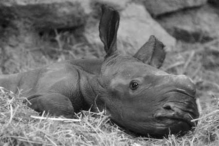 对犀牛妈妈来说,一件幸运的事是宝宝出生时没有角。出生3个小时内,犀牛宝宝就可以用脚走路了,在接下来的日子里迅速成长,并成熟起来。一个宝宝每天能喝12加仑的乳汁,1个月就能增加约100磅体重。并不是所有犀牛宝宝的行为都一样。例如,黑犀牛宝宝走在妈妈前面,但是白犀牛宝宝则更愿意跟在妈妈身后。