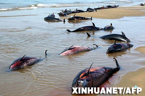 自2007年9月底以来,共有152条海豚死在这一带的海滩上。如此大规模的海豚“集体自杀”引起了有关部门和环保主义者的关注,当地开展的捕鱼作业可能是导致海豚“集体自杀”的原因。