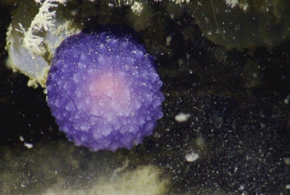 这个漂浮实验室在海峡群岛的项目主要重心是研究深海珊瑚,但这奇特的球吸引了科学家的注意。视频还包含了随着照相机不断移动,研究人员进行实时观测的一段配音。他们将这个球称为“紫色球状体”!