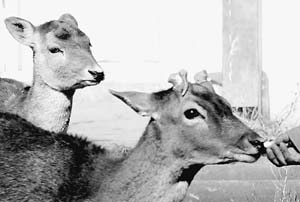 在阿富汗喀布尔动物园,生活着一批中国政府于2002年10月赠送的动物,包括一对狮子、一对鹿、一对白家猪、一对棕熊和一只公狼。如今,它们已习惯了这里的生活。图为其中的一对鹿,这对鹿关系不太和睦,公鹿经常用角“欺负”母鹿,园方“一怒之下”把公鹿的角给割了,终于让它“老实”了许多。 《人民日报》 (2005年01月12日 第七版) |