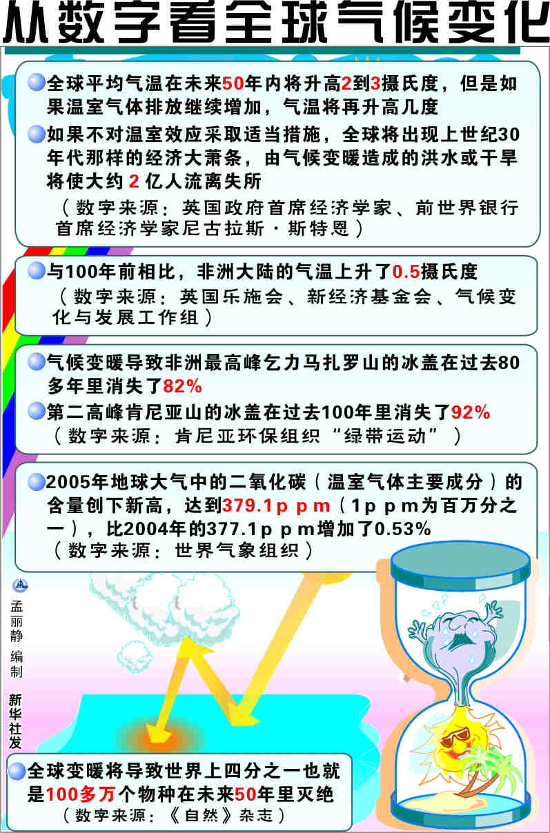 一系列权威统计数字表明,遏制全球变暖趋势,保护人类家园刻不容缓。