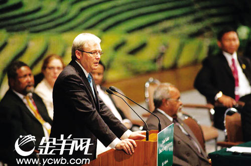 澳大利亚新任总理陆克文宣誓就职后做的第一件大事就是签署防止全球变暖的《京都议定书》,使得美国布什政府在国际社会越发孤立。
