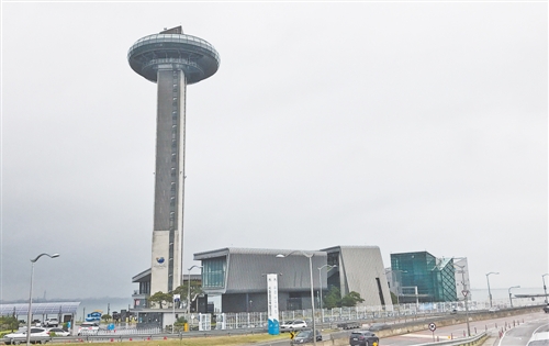 位于韩国西海岸的始华湖潮汐发电站在利用潮汐发电的同时,也在探索海上风力发电和太阳能发电。发电站风景优美,配套建设了观景平台、“空中”咖啡厅、纪念品商店等观光休闲设施。图为始华湖潮汐发电站主体建筑。本报记者 白云飞文/摄
