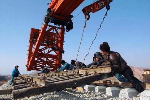 为深入贯彻落实西部大开发战略,加快中西部地区发展,中央政府近年来不断加大对西部地区的政策和资金支持力度。目前,西部12个省区市经济保持平稳较快增长势头,农村生产生活条件不断改善,基础设施建设、生态环境保护与建设显著加强。 在青海省平安县境内,铁路工人在进行紧张的换轨作业(2007年12月7日摄)。进入严冬时节,青藏铁路兰青线增建二线工程仍保持24小时作业,施工进展迅速。 新华社发